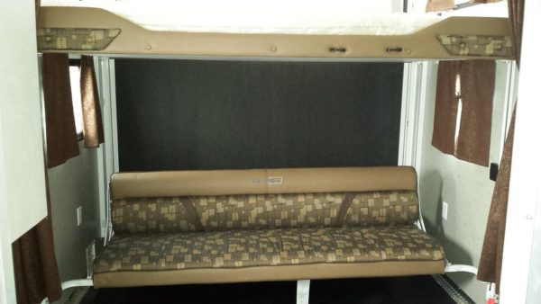 • Private queen bed up front, eagle nest bunk and two bunks in the rear