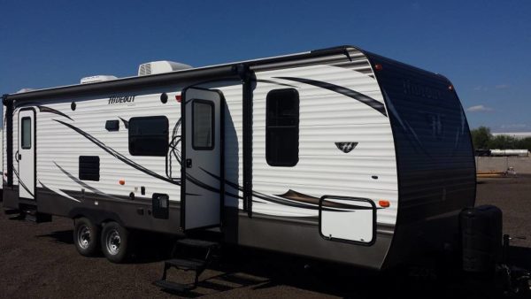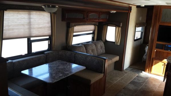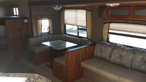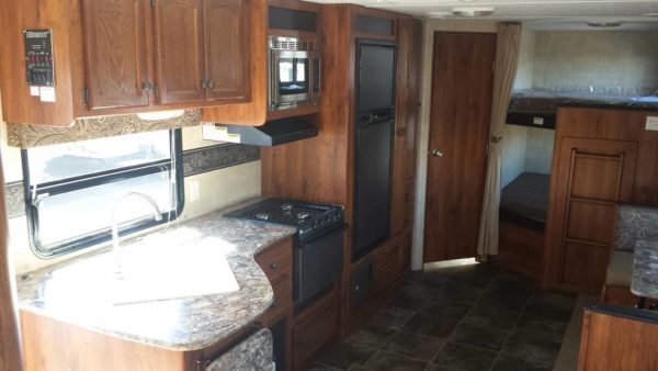 - 2 full sized bunks in the back and private queen bed up front – sleeps up to 8