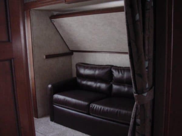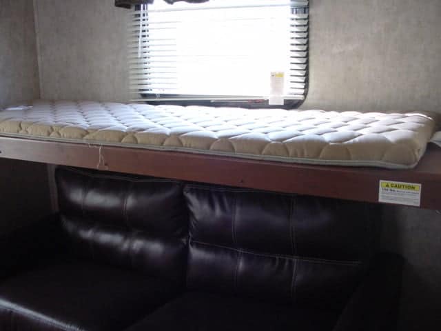 - Large bunk room in back, private queen bed up front – sleeps up to 8