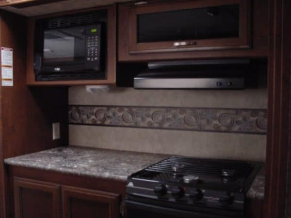 - Full kitchen with large fridge and freezer, stove, oven and microwave