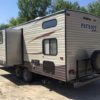 Complete with all the amenities, this unit features a roomy layout that sleeps up to 5 comfortably with a private queen bed, bunks, full kitchen and bathroom, and large electric slide-out for even more space. Whether you choose to put the entertainment system and air conditioning to use indoors, or recline under the patio awning outdoors, we are sure you will love this high-end trailer rental for all of your adventures.