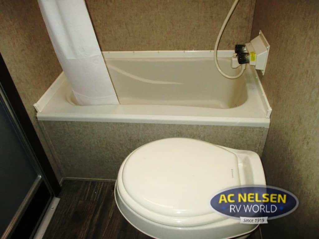 - 2 full sized bunks in the back and private queen bed up front – sleeps up to 7