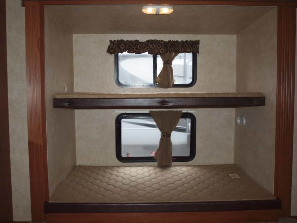 • Large bunk room in the back, private queen bed up front – sleeps up to 8